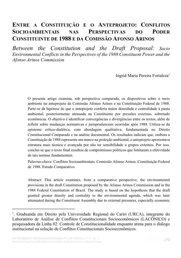 No eixo História Constitucional e Direito Comparado, os textos de Djamiro Ferreira Acipreste Sobrinho, Ingrid Maria Pereira Fortaleza, José Sarto Fulgêncio de Lima Filho, Benício Fagner dos Santos e Clara Oliveira Lucena da Cunha mapeiam as raízes histórico-constitucionais dos conflitos socioeconômicos, articulando categorias críticas, comparações entre Brasil e França e releituras de momentos-chave do constitucionalismo brasileiro.